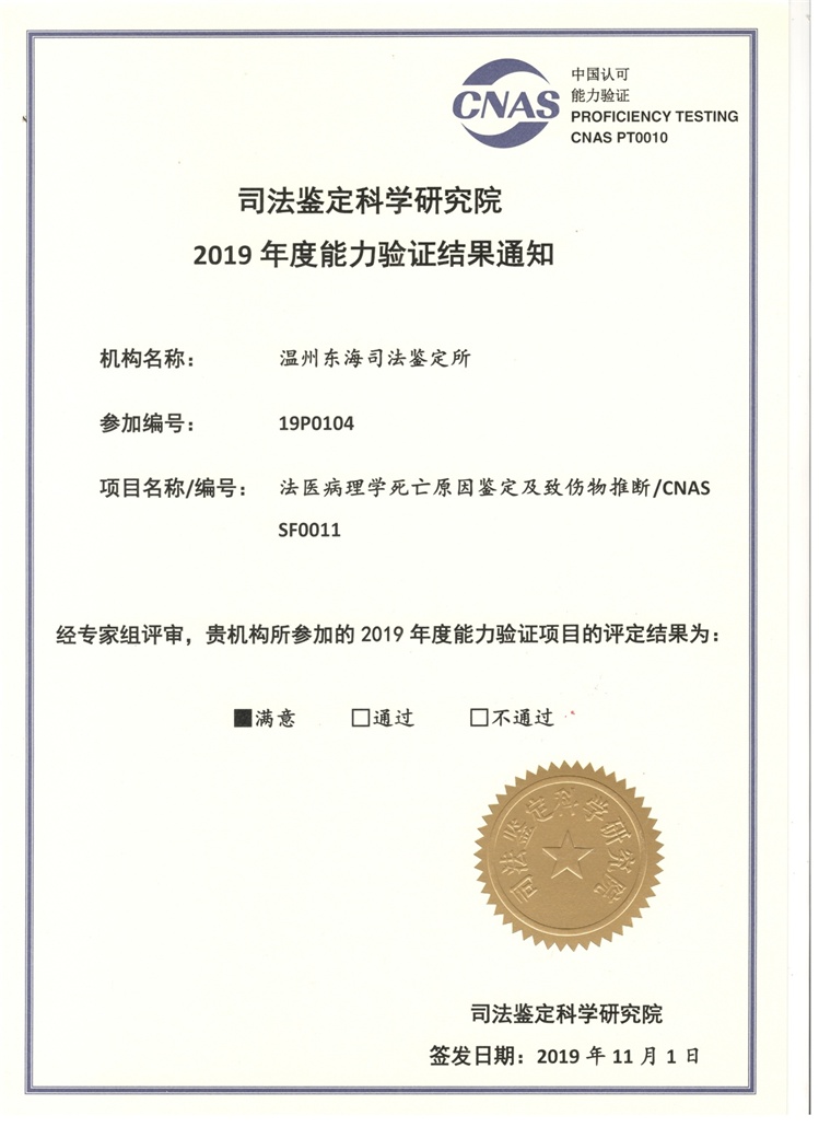 2019年能力验证/法医病理学死亡原因鉴定及致伤物推断