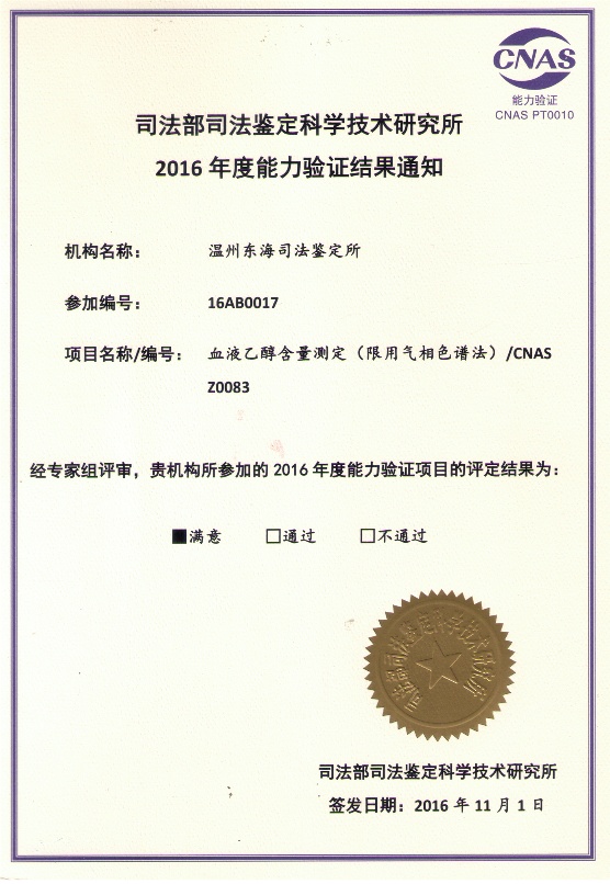 2016年能力验证-血液乙醇含量测定