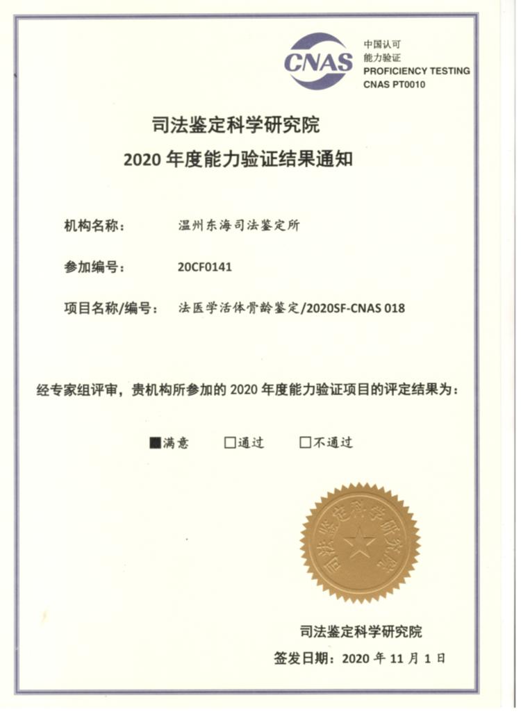 2020年能力验证/法医学活体骨龄鉴定